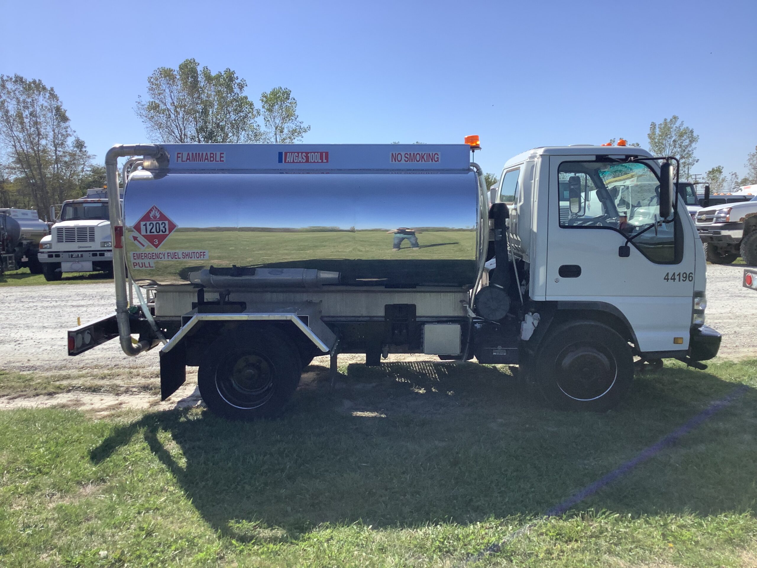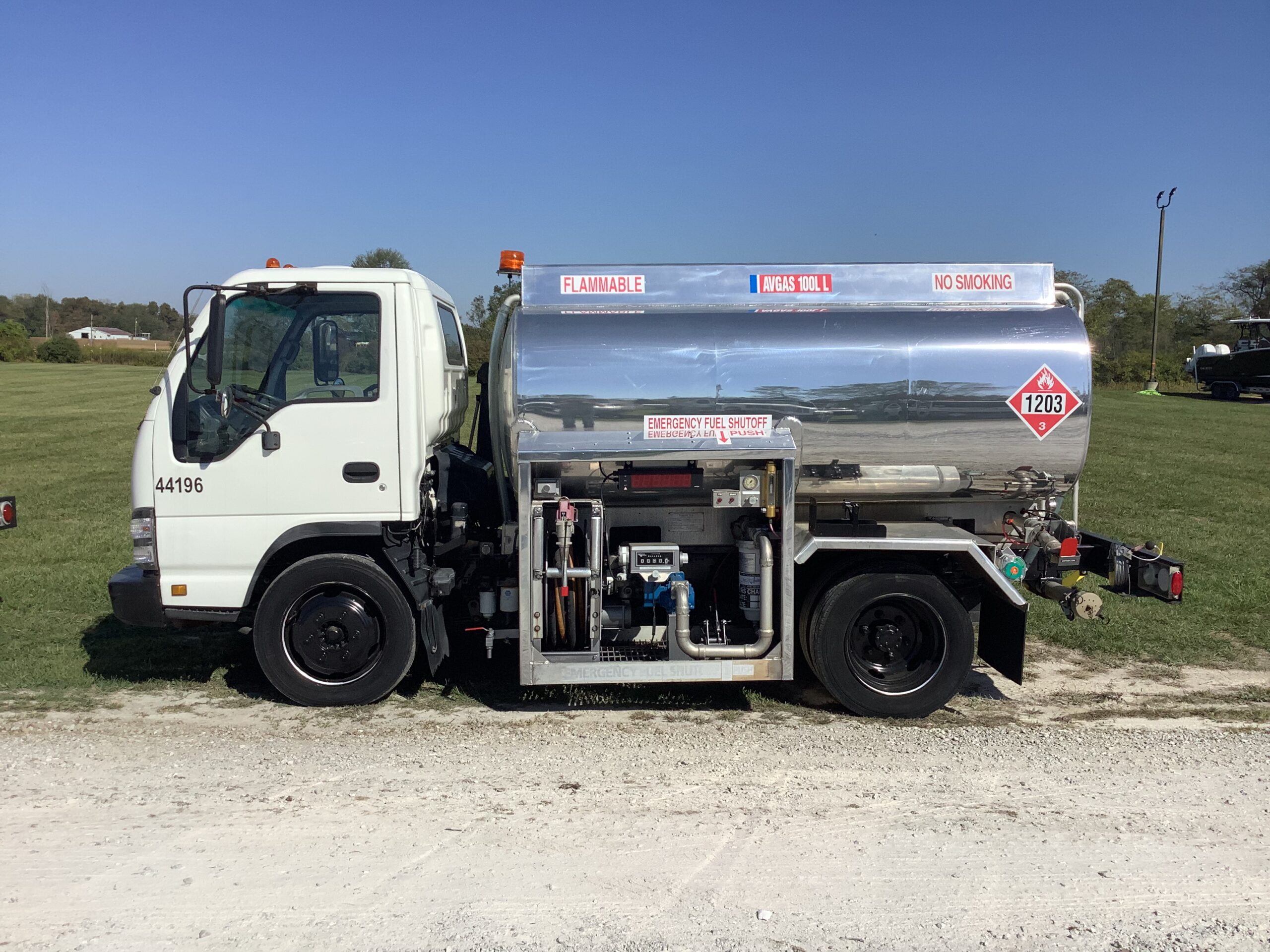 Avgas Refueler with 1,500 U.S. gallon aluminum tank fully baffled, single compartment, overturn protection, 20” manhole with 10” fill, and pressure vacuum vents. This unit is refurbished.