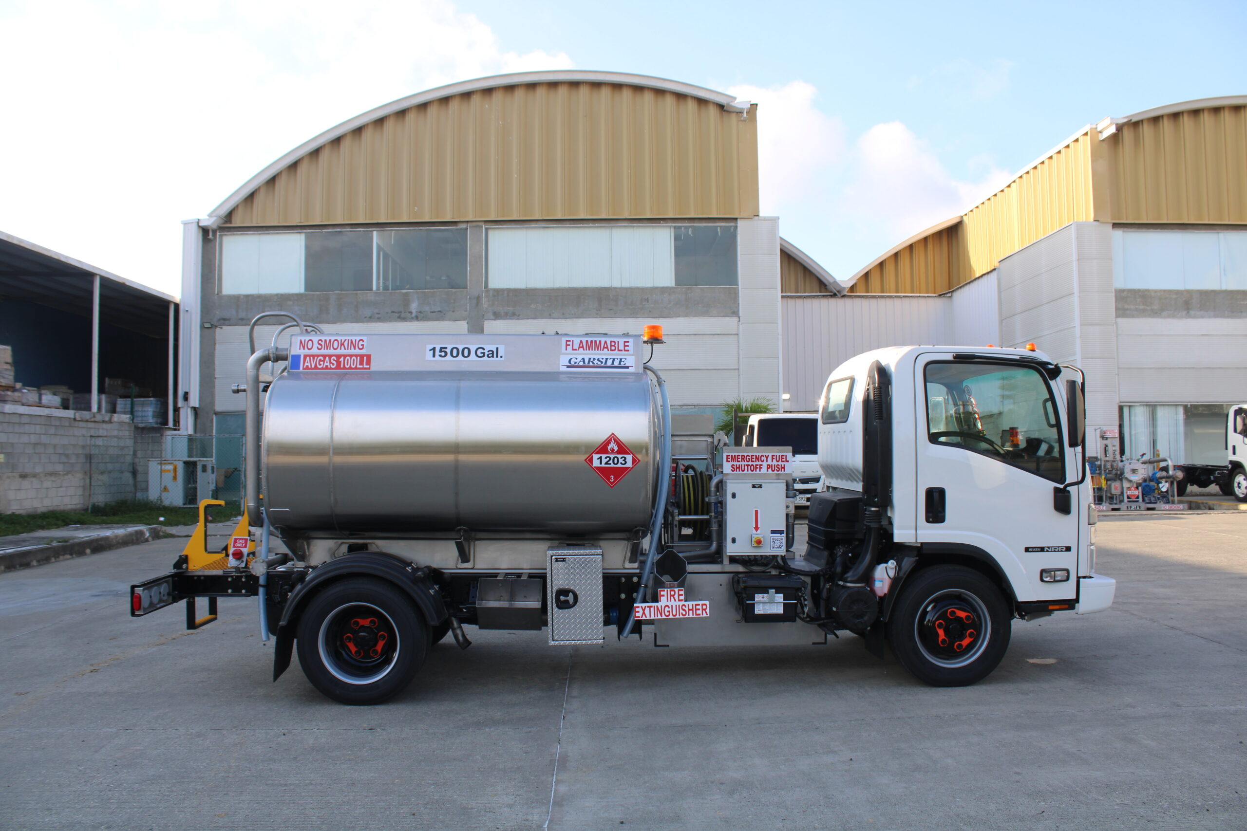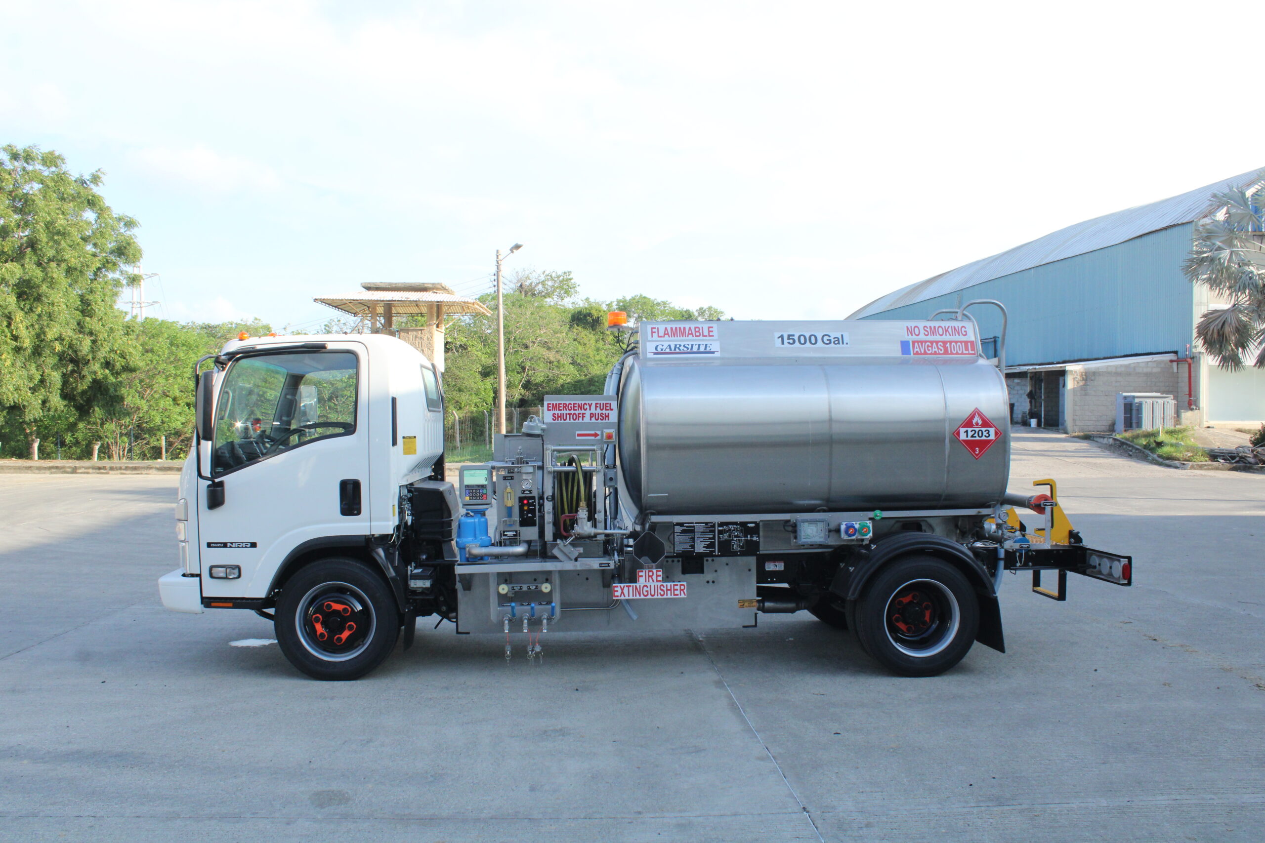 Avgas Refueler with 1,500 U.S. gallon aluminum tank fully baffled, single compartment, overturn protection, 20” manhole with 10” fill, and pressure vacuum vents.