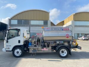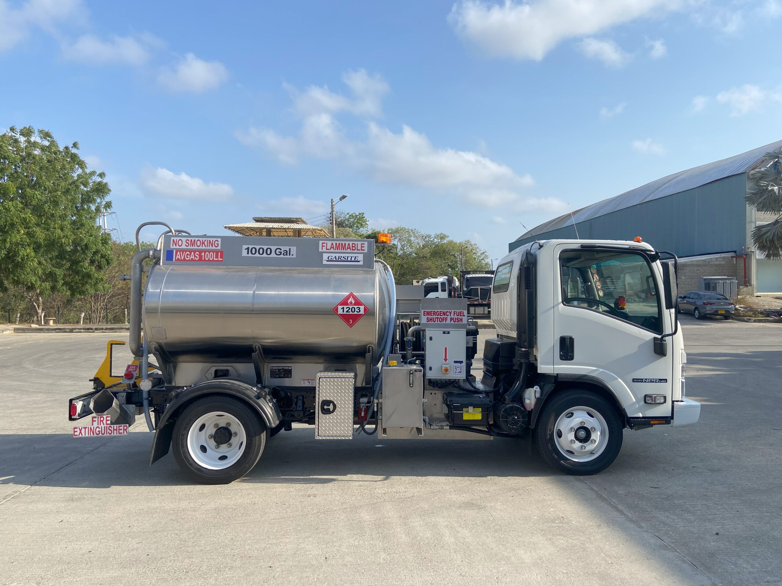 Avgas Refueler with 1,000 U.S. gallon aluminum tank fully baffled, single compartment, overturn protection, 20” manhole with 10” fill, and pressure vacuum vents.