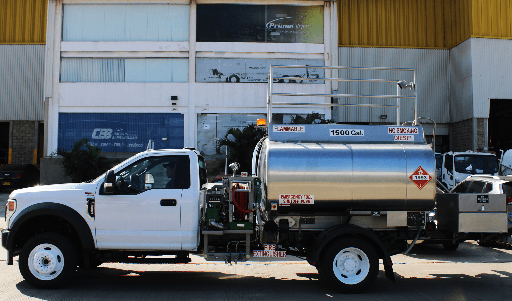 New 1,500 gallon (5,675 Liter) diesel dispensing refueler, built on Ford F550 4×4 Chassis, with gasoline engine, automatic transmission