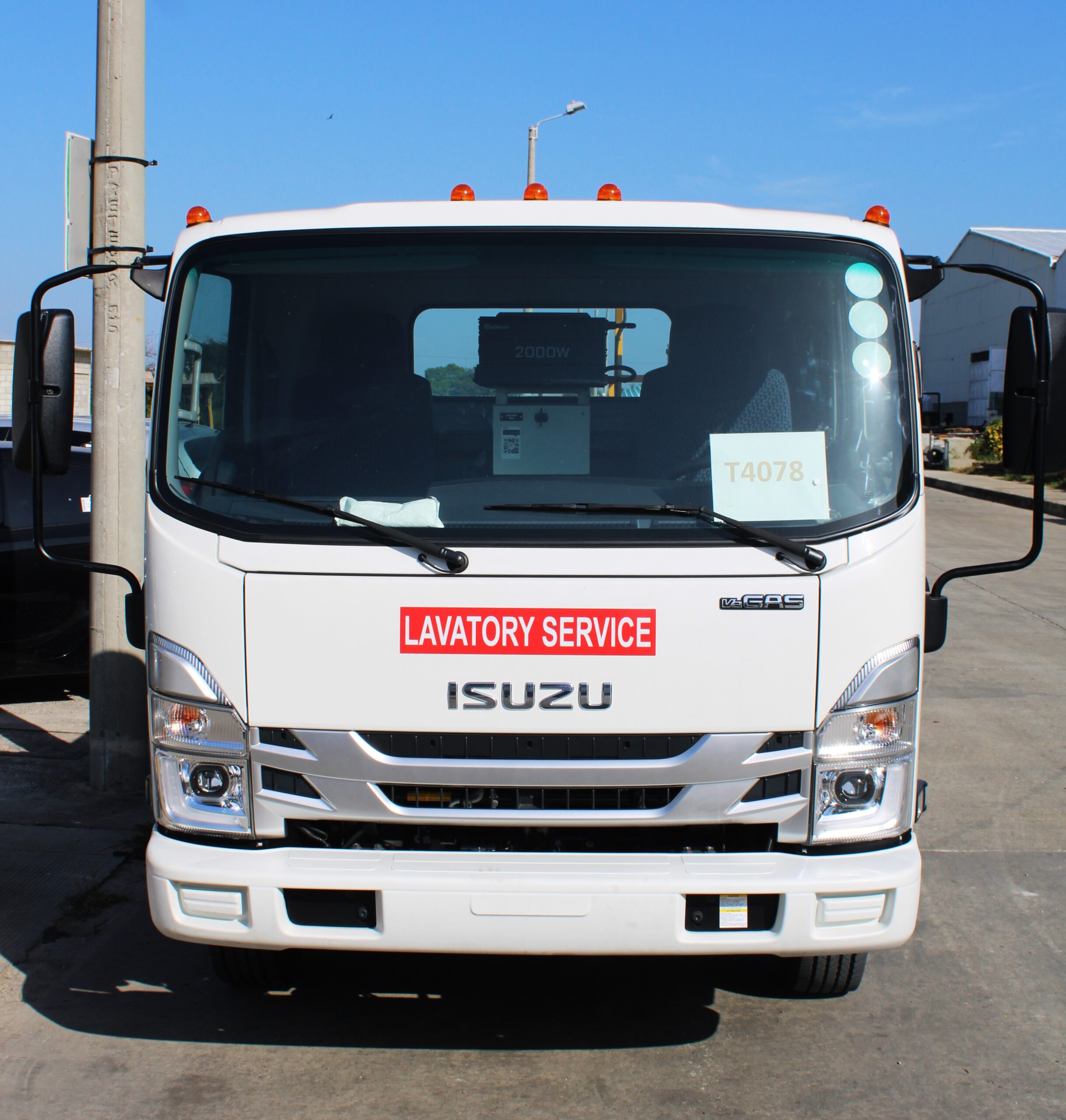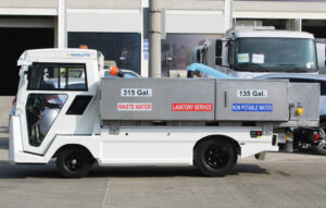 FEATURES: The fully electric lavatory truck options include 450-Gallon (1,700 Liter) stainless steel, dual compartment tank, 315-Gallon (1,190 Liter) waste capacity, 135-Gallon (510 Liter), and non-potable water capacity.